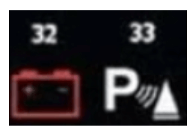 32. 충전 시스템 경고 Bettery / Alternator warning : 시동 후 일정 시간 지나면 꺼지지만, 운전 중 점등된다면 충전이 잘 이루어지지 않는 것이므로 전기 장치 사용을 자제하고 인근 정비소에 점검을 받아야 합니다.